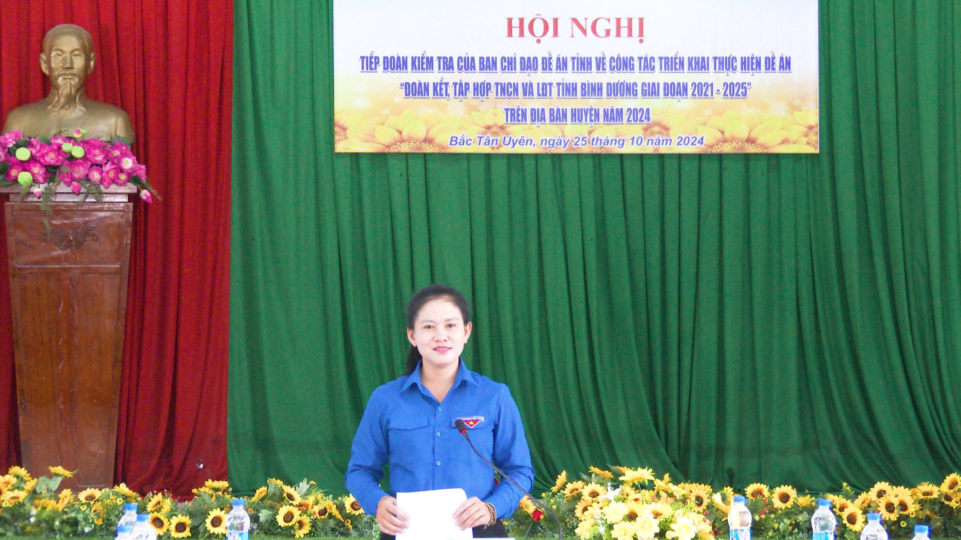 Tại buổi kiểm tra, ông Đỗ Ngọc Lợi - Bí thư huyện Đoàn Bắc Tân Uyên đại diện cơ quan thường trực Ban chỉ đạo thực hiện đề án đoàn kết tập hợp thanh niên công nhân và lao động trẻ huyện báo cáo tóm tắt kết quả hoạt động của huyện thời gian qua. Qua báo cáo cho thấy, với sự lãnh đạo Huyện Ủy, BTC Đề án huyện, các ban, ngành, đoàn thể, chính quyền từ huyện đến cơ sở, sự phối hợp trách nhiệm của các ngành, các chủ nhà trọ trong công tác đoàn kết, tập hợp TNCN đã được triển khai, thực hiện hiệu quả; các hoạt động cho thanh niên không chỉ mở rộng trên phạm vi số lượng Chi đoàn, Chi hội được thành lập mà còn đi vào chiều sâu trong việc chăm lo đời sống văn hóa, tinh thần cho thanh niên công nhân, trang bị kiến thức pháp luật, bảo vệ quyền lợi chính đáng cho thanh niên công nhân. 10 tháng đầu năm 2024, huyện đã phát triển mới 6 lực lượng nòng cốt thanh niên công nhân; thành lập mới 7 chi hội TNCN, 3 nữ TNCN với 210 hội viên. Tính đến nay, toàn huyện có 75 Chi đoàn, Chi hội thanh niên công nhân, với 1663 hội viên; trong đó: Thanh niên có 40 chi hội với 718 hội viên, 2 Chi đoàn với 36 Đoàn viên; Phụ nữ có 33 Chi hội với 916 hội viên. So với chỉ tiêu Đề án do tỉnh phân bổ cho huyện thành lập giai đoạn, huyện đã đạt 28/30 chi hội TNCN, nữ TNCN, đạt 93,3%; Chi đoàn, Chi hội trong doanh nghiệp ngoài nhà nước đạt 6/5, đạt 120%; lực lượng nòng cốt 38/50, đạt 76%, phát triển đảng viên 7/2, đạt 350%.