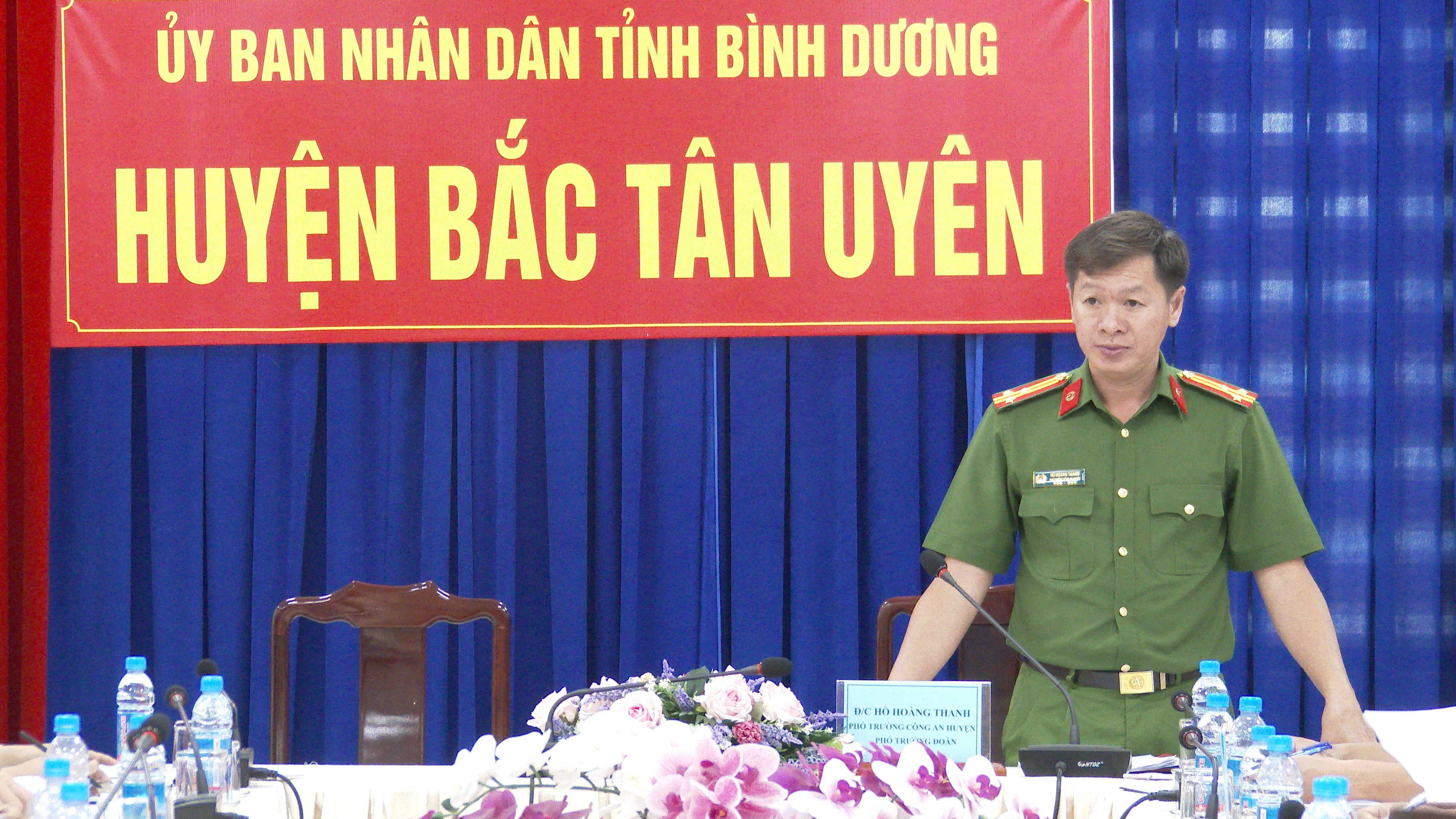 Thượng tá Hồ Hoàng Thanh - Phó Trưởng công an huyện - Phó Đoàn kiểm tra phát biểu kết luận