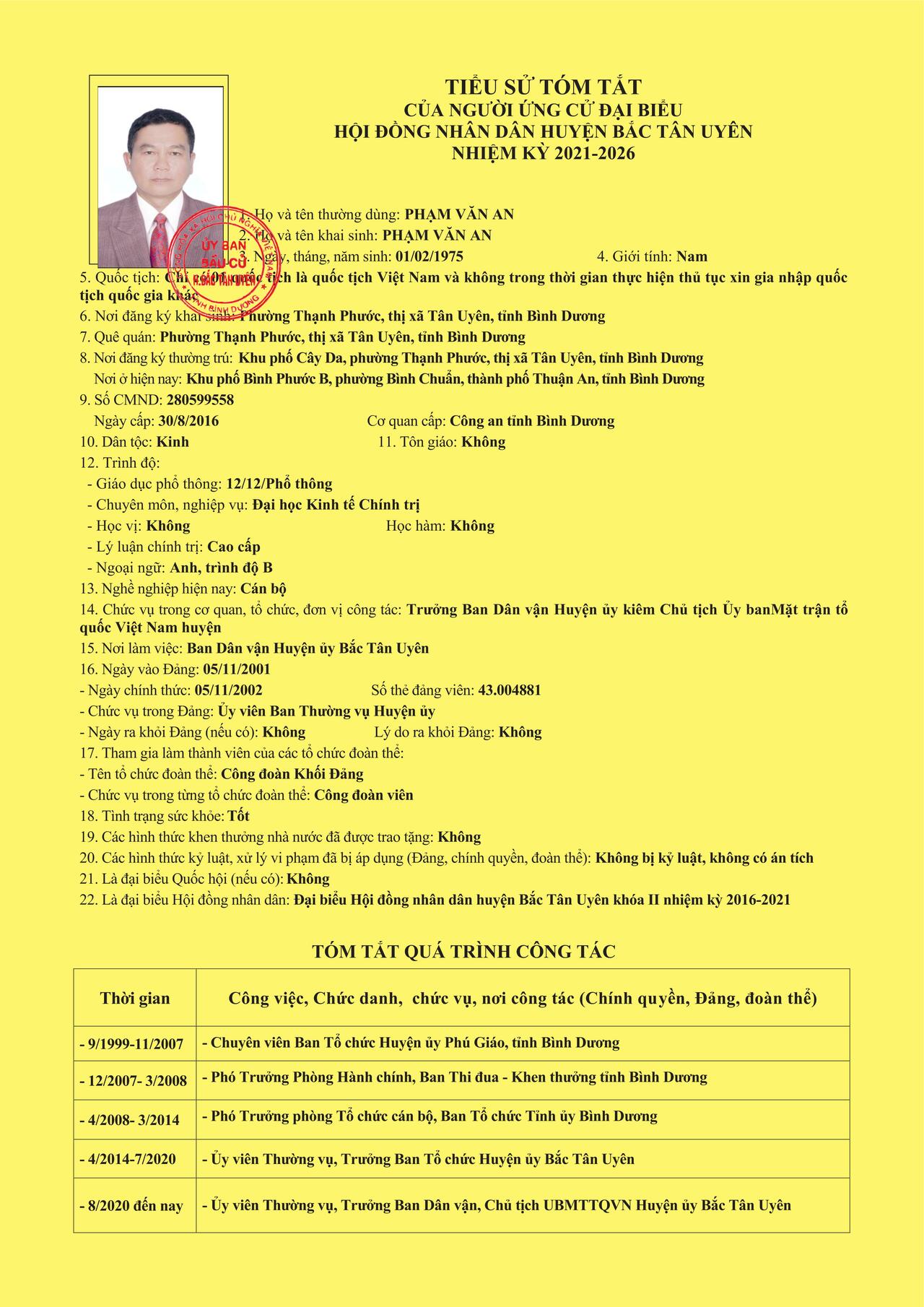 Đơn vị bầu cử số 1 - Bầu cử đại biểu Hội đồng nhân dân huyện Bắc Tân Uyên khóa III, nhiệm kỳ 2021 - 2026