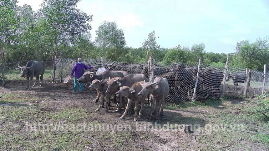 Chị Liên cho biết, năm 2005, gia đình chị thuộc hộ nghèo của xã, kinh tế rất khó khăn. Với bản chất chịu thương chịu khó, sau bao trăn trở làm sao vượt khó để vươn lên làm giàu chính đáng. Vợ chồng tôi đã mạnh dạn vay vốn Ngân hàng Chính sách xã hội huyện thông qua kênh Hội Liên hiệp phụ nữ xã với số tiền vay là 10 triệu đồng mua 1 con trâu. Đồng thời, nhận nuôi trâu rẻ cho các hộ dân trên địa bàn. Thấy việc nuôi trâu hiệu quả, với số vốn tích lũy được tôi tiếp tục bàn bạc với chồng vay thêm vốn Ngân hàng Chính sách xã hội huyện thêm 70 triệu đồng để tăng số đàn trâu. Hiện nay tổng đàn trâu của gia đình chị Liên có trên 30 con, trong đó có 12 con trâu bố mẹ. Mỗi năm sinh sản bình quân 10 con trâu con. Ngoài ra, gia đình chị Liên còn tận dụng nguồn phân từ đàn trâu để bán cho các hộ trồng cây ăn quả với nguồn thu bình quân trên 20 triệu đồng/năm.