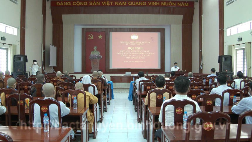 Chiều 14-12, Ủy ban Mặt trận Tổ quốc Việt Nam huyện Bắc Tân Uyên tổ chức Hội nghị học tập, quán triệt Nghị quyết Đại hội đại biểu toàn quốc lần thứ XIII và Đại hội Đảng bộ tỉnh Bình Dương lần thứ XI, nhiệm kỳ 2020 – 2025 đối với gần 70 chức sắc tôn giáo và cá nhân tiêu biểu trên địa bàn huyện.