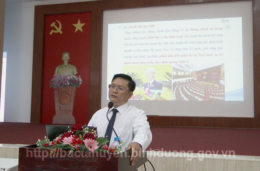 Các đại biểu tham dự hội nghị đã nghe Tiến sĩ Vũ Trung Kiên - Phó Trưởng Khoa Xây dựng Đảng, Học viện Chính trị Khu vực II truyền đạt các nội dung của Nghị quyết Đại hội đại biểu toàn quốc lần thứ XIII của Đảng với quan điểm chỉ đạo: kiên định các nguyên tắc xây dựng Đảng để xây dựng và bảo vệ vững chắc Tổ quốc Việt Nam Xã hội Chủ nghĩa; bảo đảm cao nhất lợi ích quốc gia - dân tộc; khơi dậy mạnh mẽ tinh thần yêu nước, ý chí tự lực tự cường dân tộc, sức mạnh đại đoàn kết toàn dân tộc và khát vọng phát triển đất nước phồn vinh, hạnh phúc, tăng cường xây dựng, chỉnh đốn Đảng; xây dựng Đảng và hệ thống chính trị trong sạch, vững mạnh toàn diện... Các đại biểu tham dự cũng được quán triệt các nội dung Nghị quyết Đại hội đại biểu Đảng bộ tỉnh Bình Dương lần thứ XI, nhiệm kỳ 2020-2025.