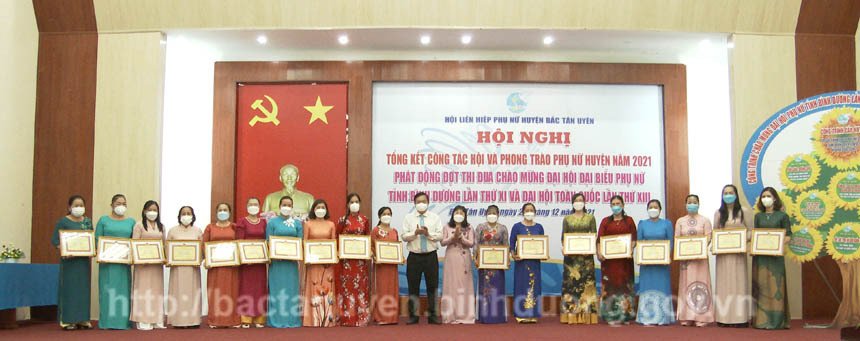 Dịp này, nhằm chào mừng Đại hội đại biểu Phụ nữ tỉnh Bình Dương lần thứ XI, Đại hội đại biểu Phụ nữ toàn quốc lần thứ XIII, Hội LHPN huyện đã tổ chức đăng ký thực hiện Công trình “tiếp sức chăm lo cho 100 phụ nữ, trẻ em bị ảnh hưởng bởi dịch bệnh Covid-19”; thực hiện mô hình học tập và làm theo gương Bác “tuần lễ tiết kiệm để san sẻ yêu thương”. Ngoài ra, Hội LHPN tỉnh, UBND huyện đã khen thưởng cho 14 tập thể và 18 cá nhân đạt thành tích xuất sắc trong công tác Hội và phong trào phụ nữ năm 2021.