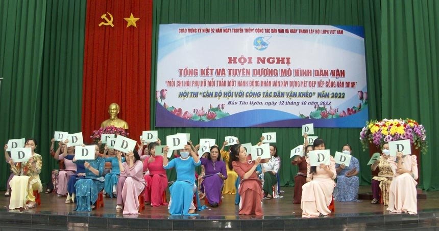 Chiều ngày 12-10 tại Trung tâm Chính trị huyện, Hội Liên hiệp phụ nữ huyện Bắc Tân Uyên tổ chức tổng kết, tuyên duyên mô hình dân vận “Mỗi chi hội phụ nữ mỗi tuần một hành động nhân văn xây dựng nét đẹp nếp sống văn minh” và Hội thi Dân vận khéo huyện năm 2022.
