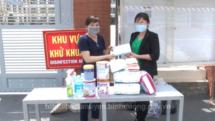 Nhằm kịp thời chia sẻ những khó khăn cùng hội viên phụ nữ trên địa bàn huyện Bắc Tân Uyên trong giai đoạn khó khăn khi tình hình dịch COVID-19 đang diễn biến hết sức phức tạp. Sáng ngày 9-8, bà Phan Thị Ngọc Lợi – Chủ tịch Hội Liên hiệp Phụ nữ huyện Bắc Tân Uyên đã đại diện Hội gửi tặng phần quà đến sản phụ vừa sinh con trong khu cách ly tập trung Trường tiểu học Tân Thành.