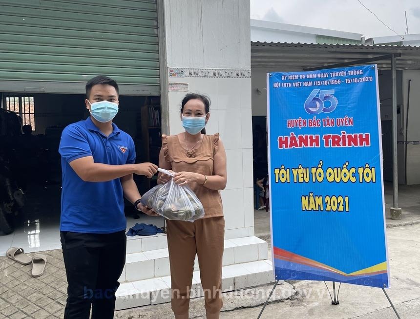 Tại mỗi nơi đến, Hội Liên hiệp thanh niên Việt Nam huyện Bắc Tân Uyên đã tuyên truyền vận động người dân, thanh niên công nhân tiếp tục nâng cao ý thức trách nhiệm nghĩa vụ của mình, cùng chung sức, đồng lòng phòng chống dịch bệnh Covid-19. Qua đó, đoàn đã tặng 100 phần quà cho thanh niên công nhân, mỗi phần quà 5kg cam.