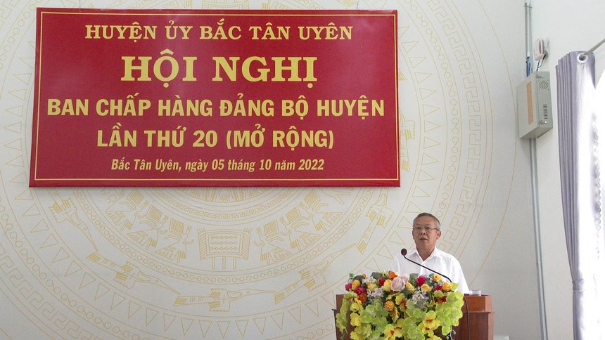 Sáng ngày 5-10, Huyện ủy Bắc Tân Uyên tổ chức Hội nghị Ban Chấp hành Đảng bộ huyện mở rộng lần thứ 20 nhằm đánh giá tình hình thực hiện Nghị quyết Đảng bộ Huyện 9 tháng đầu năm 2022. Tham dự hội nghị có ông Võ Văn Bá - Trưởng Ban Nội chính Tỉnh ủy; ông Thái Thanh Bình - Bí thư Huyện ủy, Chủ tịch UBND huyện chủ trì hội nghị, cùng các thành viên Ban Chấp hành Đảng bộ huyện và các cơ quan, ban ngành đoàn thể huyện.