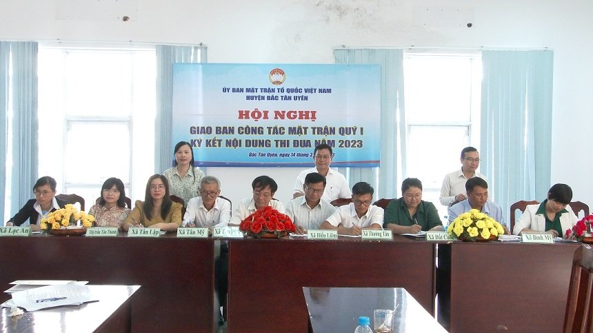Dịp này MTTQ Việt Nam huyện cũng đã tổ chức cho các xã ký kết nộidung thi đua năm 2023.Dự và phát biểu tại hội nghị, ôngPhạm Văn An-Trưởng ban Dân vận Huyện ủy-Chủ tịch UBMTTQ VN huyện yêu cầu trongthời gian tới, MTTQ các xã, thị trấn cần phối hợp với các ngành tiếp tục triểnkhai thực hiện có hiệu quả các đề án, phong trào; quan tâm thực hiện tốt côngtác chăm lo cho các đối tượng bảo trợ, khảo sát các hộ có hoàn cảnh khó khăn vềnhà ở để tham mưu xây dựng nhà đại đoàn kết cho các đối tượng; tổ chức tốt việchiệp thương bầu cử trưởng ấp, khu phố; triển khai thực hiện đạt mục tiêu, chỉtiêu kế hoạch năm và nội dung giao kết thi đua đã ký.