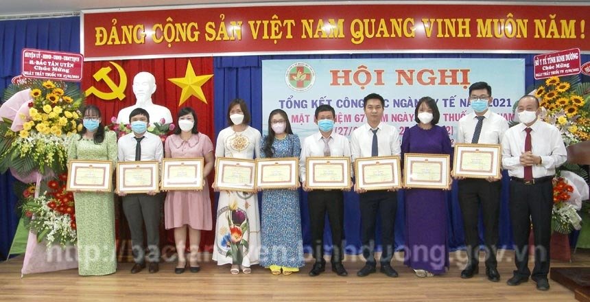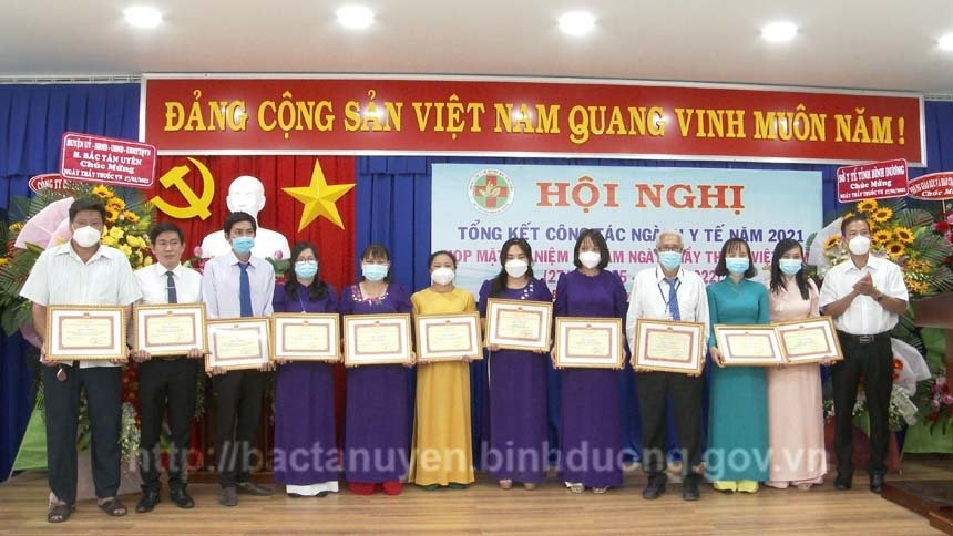 Dịp này, Sở Y tế tỉnh Bình Dương và Ủy ban nhân dân huyện tặng giấy khen cho 12 tập thể và 33 cá nhân hoàn thành tốt nhiệm vụ được giao năm 2021; 2 cá nhân Trung tâm Y tế huyện Bắc Tân Uyên được tặng Kỷ niệm chương “Vì Sức khỏe nhân dân” do Bộ Y tế tặng.