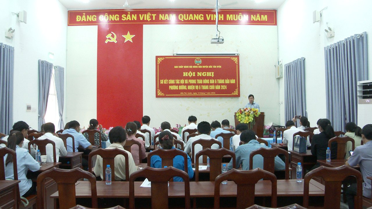 Dự và phát biểu tại hội nghị, lãnh đạo Hội Nông dân tỉnh và lãnh đạo huyện ghi nhận những kết quả mà hội Nông dân huyện đạt được trong 6 tháng đầu năm; chia sẽ những khó khăn trong quá trình triển khai, thực hiện công tác hội và phong trào nông dân của các cấp hội. Đối với nhiệm vụ 6 tháng cuối năm, lãnh đạo hội Nông dân tỉnh và lãnh đạo huyện yêu cầu các cấp hội cần chú trọng đến công tác phát triển hội viên theo chỉ tiêu đề ra; việc quản lý các nguồn vốn, quản lý hội viên bằng app nông dân; rà soát, vận động hội viên nông dân tham gia BHXH tự nguyện; tiếp tục triển khai, thực hiện các Nghị quyết, văn bản của Trung ương, của hội Nông dân các cấp; phát huy vai trò chủ thể của nông dân trong tham gia xây dựng nông thôn mới; tham gia xây dựng nông thôn, phát triển kinh tế-xã hội; thực hiện tốt các phong trào thi đua trong cán bộ, hội viên nông dân; kịp thời biểu dương, khen thưởng những tập thể, cá nhân có thành tích tiêu biểu trong thực hiện công tác hội và phong trào nông dân.