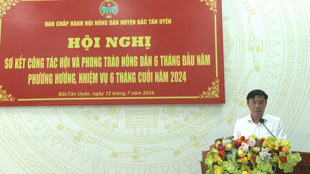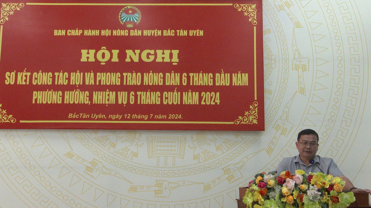 Sáng ngày 12/7, Hội Nông dân huyện Bắc Tân Uyên tổ chức hội nghị sơ kết công tác hội và phong trào nông dân 6 tháng đầu năm, triển khai phương hướng, nhiệm vụ 6 tháng cuối năm 2024. Dự hội nghị có ông Trương Thành Quang-Phó Chủ tịch Hội Nông dân tỉnh, ông Phạm Văn An-Ủy viên Thường vụ-Trưởng ban Dân vận Huyện ủy.