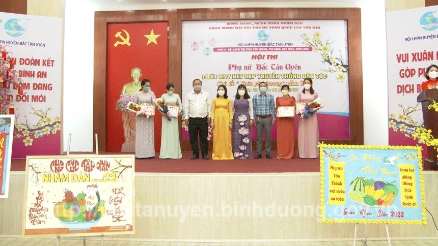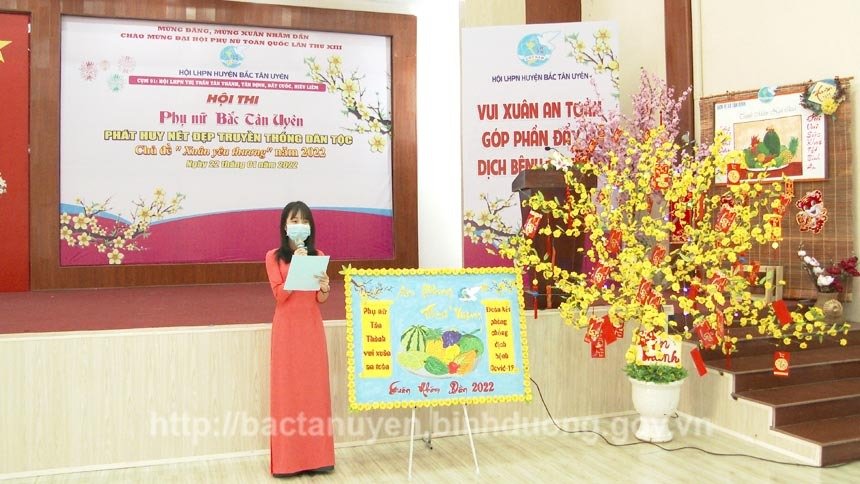 Ngày 22-1, Hội Liên hiệp phụ nữ huyện Bắc Tân Uyên tổ chức Khai mạc Hội thi phụ nữ Bắc Tân Uyên phát huy nét đẹp truyền thống dân tộc với chủ đề “Xuân yêu thương” năm 2022 và trao tặng công trình “Tiếp sức chăm lo cho phụ nữ và trẻ em có hoàn cảnh khó khăn, bị ảnh hưởng bởi dịch COVID-19”. Tham dự hội thi có ông Võ Văn Tính - Phó Bí thư Thường trực Huyện ủy, Chủ tịch HĐND huyện; bà Lê Thị Anh Đào - Phó Ban dân vận Huyện ủy; bà Phan Thị Ngọc Lợi - Chủ tịch Hội LHPN huyện cùng hơn 80 cán bộ chi hội, tổ hội, hội viên, phụ nữ nghèo, phụ nữ có hoàn cảnh khó khăn do ảnh hưởng dịch Covid-19.