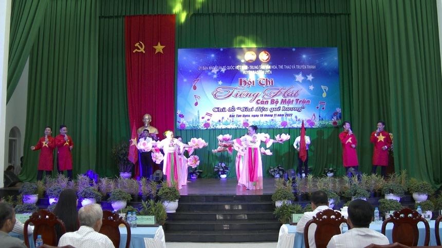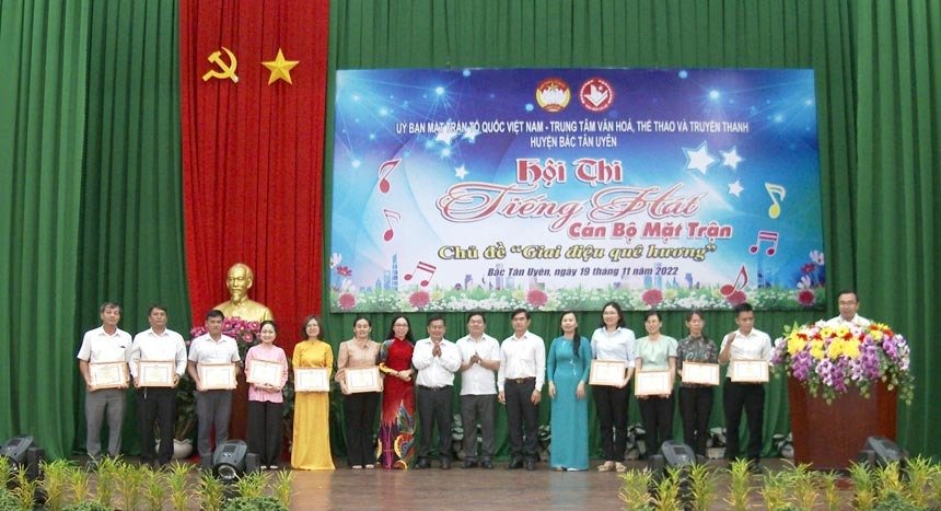 Sáng ngày 19-11 tại Trung tâm Chính trị huyện, Ủy ban Mặt trận Tổ quốc Việt Nam huyện Bắc Tân Uyên phối hợp cùng Trung tâm Văn hóa Thể thao và Truyền thanh huyện đã tổ chức Hội thi tiếng hát cán bộ Mặt trận năm 2022 với chủ đề "Giai điệu quê hương". Tham dự hội thi có ông Phạm Văn An - Trưởng ban Dân vận Huyện ủy, Chủ tịch Ủy ban MTTQ Việt Nam huyện; ông Trần Văn Phương - Phó Chủ tịch UBND huyện; ông Huỳnh Ngọc Hạnh - Giám đốc Trung tâm Văn hóa Thể thao và Truyền thanh huyện; các ông, bà Ủy viên Ủy ban MTTQ Việt Nam huyện; Trưởng, Phó ban công tác Mặt trận các khu, ấp trên địa bàn huyện và đông đảo Nhân dân đã về tham dự và cổ vũ.