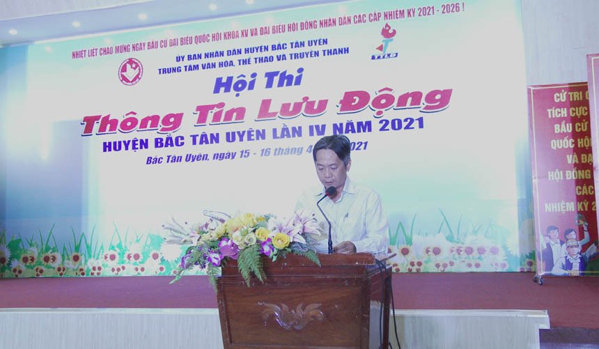 Ngày 15-4, Trung tâm Văn hóa, Thể thao và Truyền thanh huyện tổ chức khai mạc hội thi tuyên truyền lưu động huyện Bắc Tân Uyên lần thứ IV năm 2021 chào mừng Kỷ niệm 46 năm ngày giải phóng hoàn toàn miền Nam thống nhất đất nước (30/4/1975 - 30/4/2021); chào mừng bầu cử đại biểu Quốc hội khóa XIV và đại biểu HĐND các cấp, nhiệm kỳ 2021 – 2026.