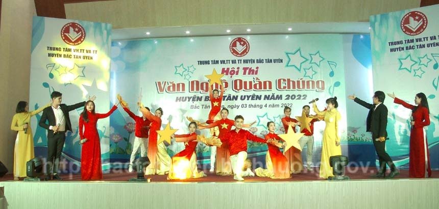 Lập thành tích chào mừng Kỷ niệm 47 năm ngày giải phóng Miền Nam thống nhất đất nước (30/4/1975-30/4/2022); chào mừng Kỷ niệm 8 năm ngày thành lập huyện (01/4/2014-01/4/2022), ngày 3-4, Trung tâm Văn hóa Thể thao và Truyền thanh huyện Bắc Tân Uyên tổ chức Hội thi Văn nghệ quần chúng huyện Bắc Tân Uyên năm 2022.