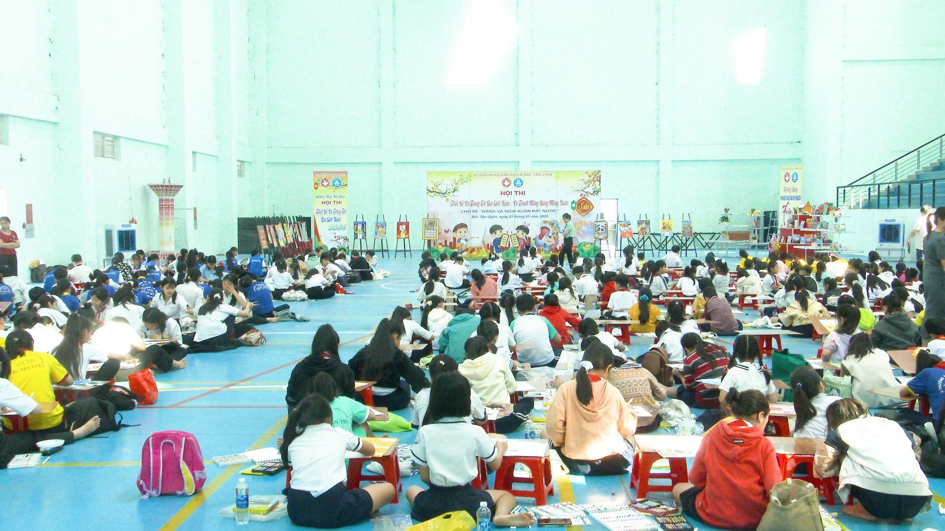 Hơn 300 bức tranh của thiếu nhi thể hiện mùa xuân trên quê hương Bắc Tân Uyên tại Hội thi vẻ tranh Mừng Đảng - Mừng Xuân Ất Tỵ