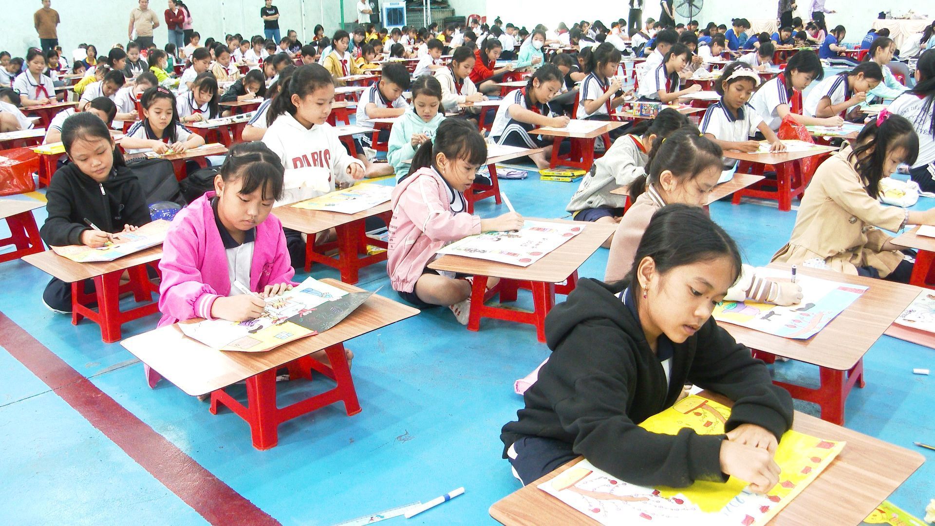 Hội thi năm nay thu hút hơn 300 em học sinh ở 2 cấp học trên địa bàn huyện tham gia vẽ trên giấy gồm cấp Tiểu học và Trung học cơ sở. Các em thể hiện tác phẩm bằng các chất liệu như: bút chì màu, màu sáp, màu nước và sơn dầu.