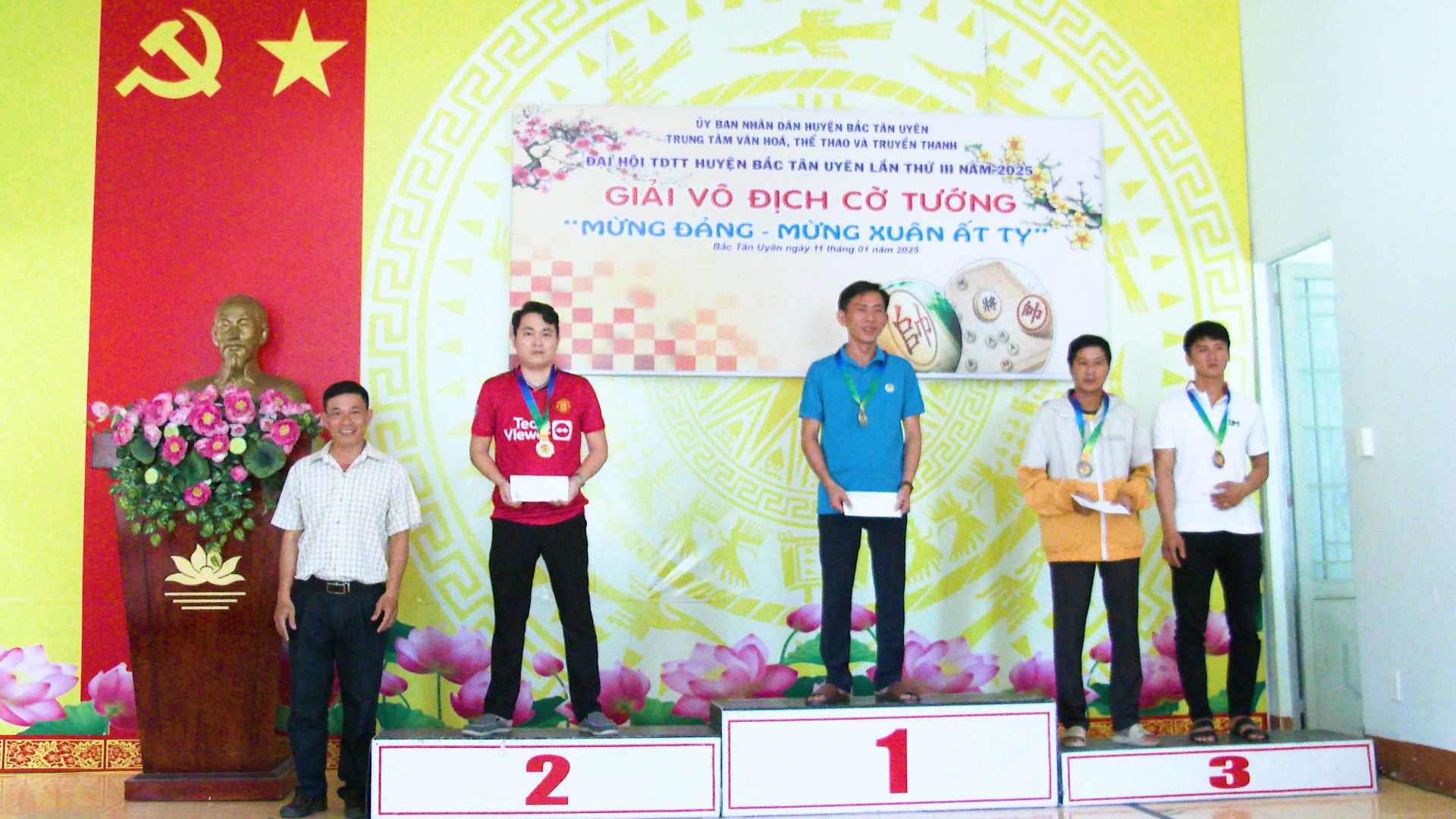 Giải quy tụ gần 50 kỳ thủ đến từ 10 đơn vị xã, thị trấn tham gia thi đấu ở nội dung đơn nam. Các kỳ thủ thi đấu theo luật cờ tướng hiện hành - hệ Thụy Sĩ 5 ván luỹ tiến, tranh tài ở hai nội dung giải cá nhân và giải đồng đội. Với sự chuẩn bị tốt về lực lượng, thi đấu quyết tâm cao, các kỳ thủ đã cống hiến cho người xem nhiều ván cờ hay, nước cờ đẹp với tinh thần thi đấu cao thượng. Kết thúc giải, Ban Tổ chức đã trao giải nhất, nhì, ba cho các VĐV xuất sắc nhất và trao giải nhất đồng đội cho thị trấn Tân Thành, nhì cho xã Lạc An và giải ba cho Tân Lập.