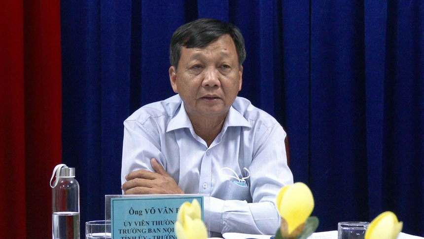 Ông Võ Văn Bá - Trưởng Ban Nội chính Tỉnh ủy, Trưởng Ban Bầu cử số 18 phát biểu chỉ đạo