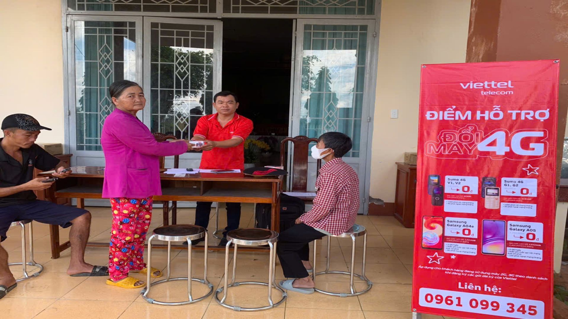 (Viettel Bình Dương tổ chức đổi thẻ SIM 2G sang 3G/4G và hỗ trợ nâng cấp dòng điện thoại cho người dân trên địa bàn huyện)
