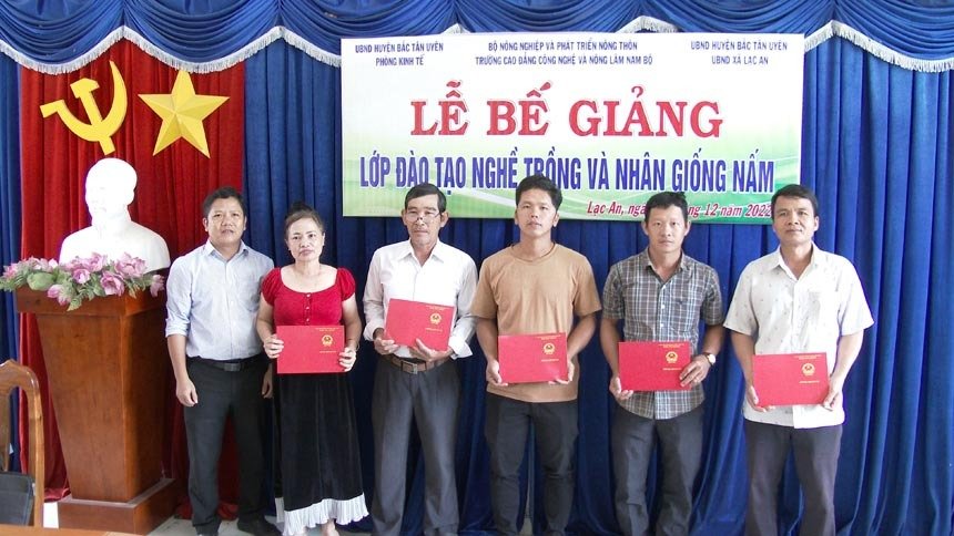 Huyện Bắc Tân Uyên: Bế giảng lớp đào tạo nghề trồng và nhân giống nấm