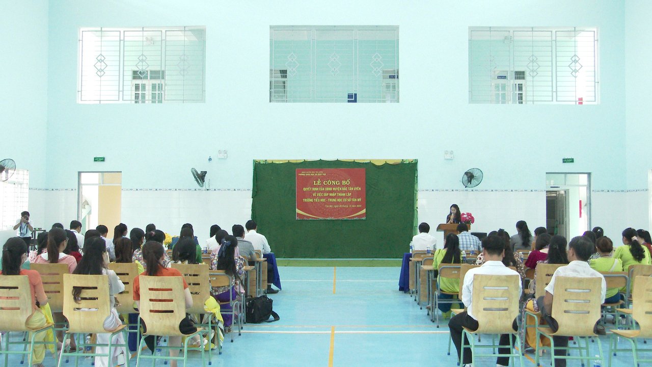 Chiều ngày 28-12, UBND huyện Bắc Tân Uyên tổ chức lễ công bố quyết định sáp nhập Trường tiểu học Huỳnh Thị Chấu và Trường THCS Tân Mỹ thành trường Tiểu học và THCS Tân Mỹ. Dự lễ công bố có ông Nguyễn Tấn Anh- HUV, Trưởng Phòng GD&ĐT huyện; ông Nguyễn Văn Nhàn- Trưởng Phòng Nội vụ huyện; lãnh đạo Đảng uỷ, UBND xã Tân Mỹ và tập thể Cán bộ, giáo viên, nhân viên và Ban đại diện cha mẹ học sinh các trường.
