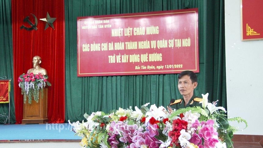 Tiếp nối truyền thống Chiến khu Đ hào hùng, thanh niên Bắc Tân Uyên hôm nay đã tiếp bước cha anh, hăng hái lên đường nhập ngũ và hoàn thành nghĩa vụ quân sự trở về địa phương. Để ghi nhận những đóng góp của các đồng chí quân nhân trong quá trình rèn luyện, cống hiến sức trẻ cho quê hương, đất nước. Trung tá Đặng Xuân Thành – Chính trị viên Ban CHQS huyện thay mặt Huyện ủy, HĐND, UBND, UBMTTQVN huyện đã ghi nhận, biểu dương ý thức, kỷ luật, tinh thần vượt khó, chấp hành tốt nội quy trong môi trường quân đội, chúc mừng các Quân nhân hoàn thành tốt nhiệm vụ quân sự trở về địa phương; tiếp tục phát huy phẩm chất Bộ đội Cụ Hồ, tích cực tham gia các phong trào thi đua yêu nước, luôn gương mẫu tham gia lao động sản xuất, các hoạt động và phong trào tại địa phương.