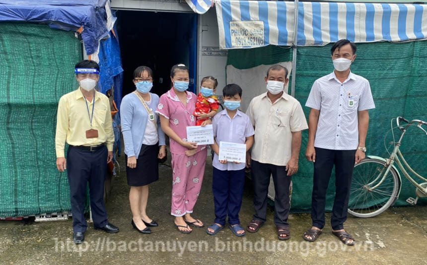 Ngày 06-10, Phòng Lao động – Thương binh và Xã hội huyện phối hợp cùng Quỹ Bảo trợ trẻ em tỉnh Bình Dương đã tổ chức trao hỗ trợ cho em Đồng Thiên Phúc, xã Bình Mỹ và em Lê Thị Như Ý, em Đỗ Văn Vẹn xã Thường Tân số tiền 5 triệu đồng mỗi em. Cả 3 em đều có hoàn cảnh khó khăn, mẹ tử vong do nhiễm Covid-19.
