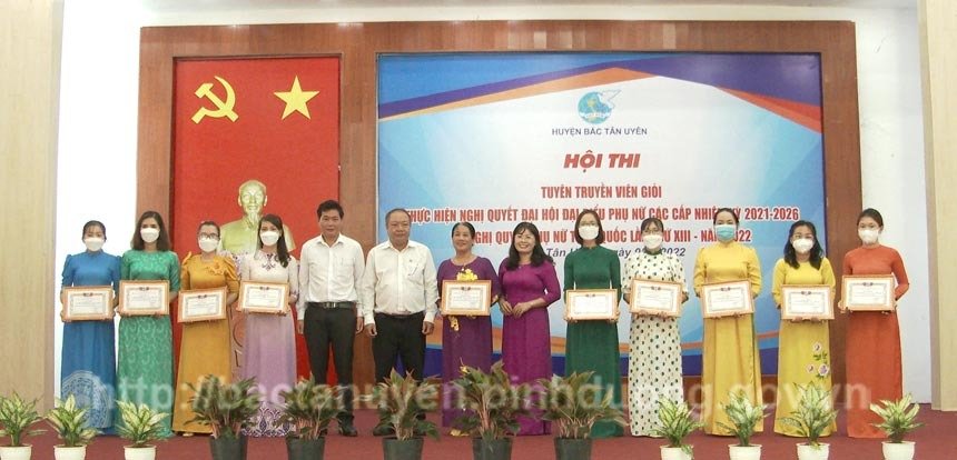Chiều ngày 5-5, Hội Liên hiệp phụ nữ Huyện Bắc Tân Uyên đã tổ chức Hội thi “Tuyên truyền viên giỏi thực hiện Nghị quyết Đại hội Phụ nữ các cấp nhiệm kỳ 2021-2026 và Nghị quyết Đại hội Phụ nữ Toàn quốc lần thứ XIII năm 2022. Tham dự Hội thi có bà Phan Thị Ngọc Lợi - Chủ tịch Hội LHPN huyện; ông Nguyễn Văn Huy - Chủ tịch Hội nông dân huyện; ông Ngô Phương Thanh - Phó Trưởng Ban Tuyên giáo Huyện ủy, cùng các đồng chí đại diện lãnh đạo Đoàn thể huyện và các thí sinh, cán bộ, hội viên đại diện cho các chi hội phụ nữ thuộc 10 xã, thị trấn trong huyện.