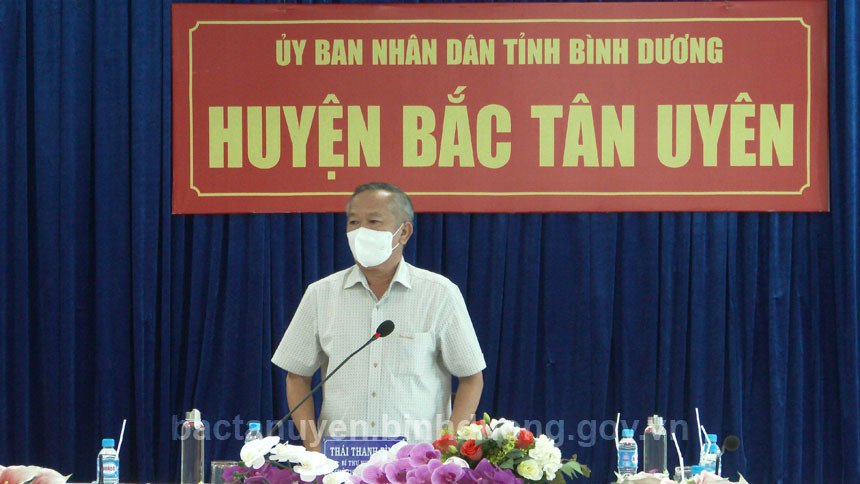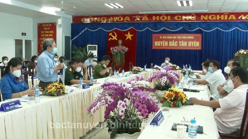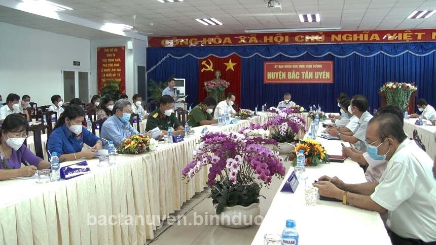 Sáng ngày 16/8, huyện Bắc Tân Uyên tổ chức cuộc họp Ban chỉ đạo phòng, chống dịch Covid-19 huyện, đồng chí Thái Thanh Bình - Tỉnh ủy viên, Bí thư Huyện Ủy, Chủ tịch UBND huyện, Trưởng ban chỉ đạo phòng, chống Covid-19 huyện chủ trì cuộc họp. Dự họp có các đồng chí là thành viên Ban chỉ đạo huyện, Bí thư Đảng ủy các xã, thị trấn trên địa bàn huyện.