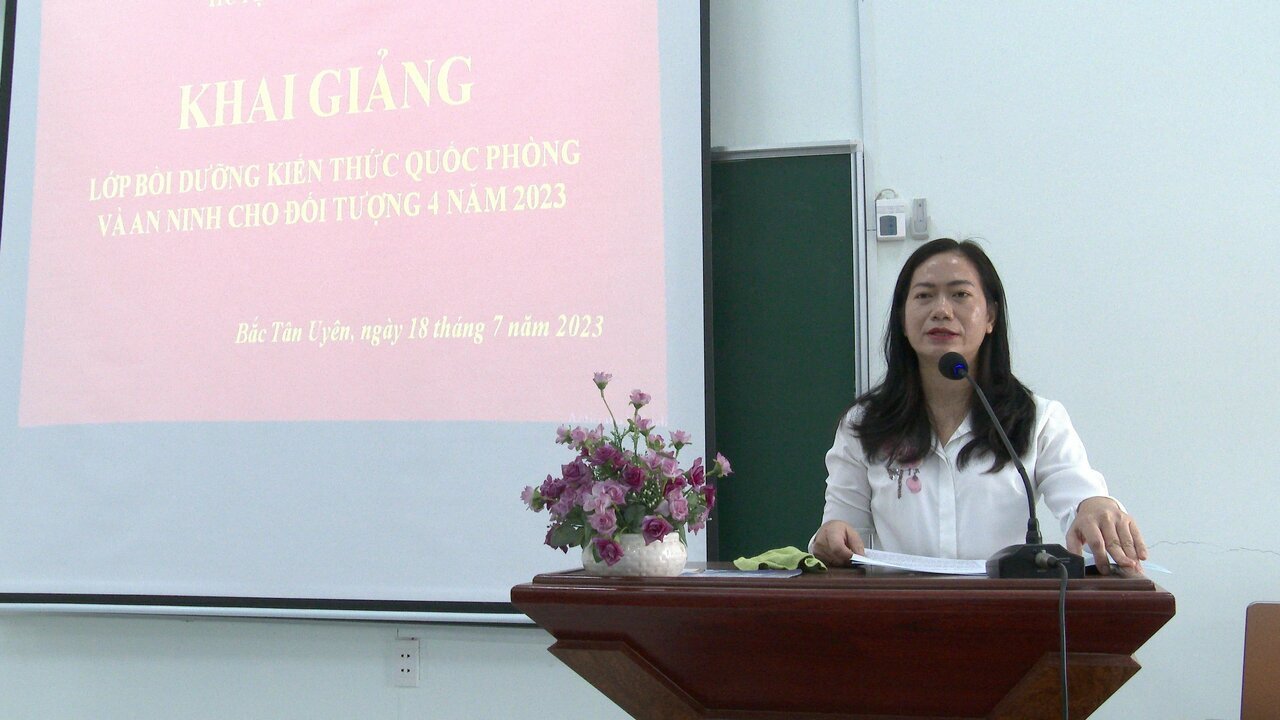 Sáng ngày 18/7, Hội đồng Giáo dục quốc phòng và an ninh huyện Bắc Tân Uyên tổ chức lễ khai giảng lớp bồi dưỡng kiến thức quốc phòng và an ninh đối tượng 4 năm 2023 cho hơn 100 học viên là cán bộ, công chức, viên chức các cơ quan, đơn vị trên địa bàn huyện.
