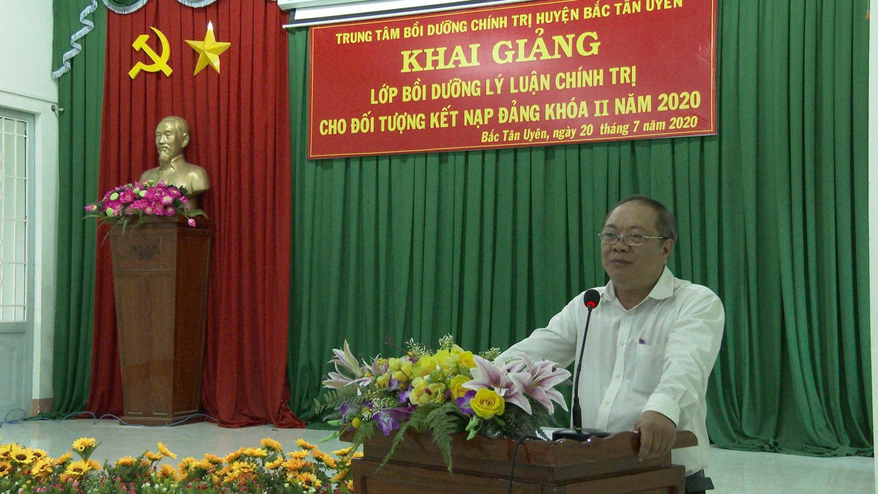Sáng ngày 20-7,Trung tâm Bồi dưỡng chính trị huyện Bắc Tân Uyên khai giảng lớp bồi dưỡng lý luận chính trị dành cho đối tượng kết nạp Đảng khóa II năm 2020 cho 75 học viên là cán bộ, đoàn viên, quần chúng ưu tú của các cơ sở Đảng khối xã, cơ quan, trường học trên địa bàn huyện.