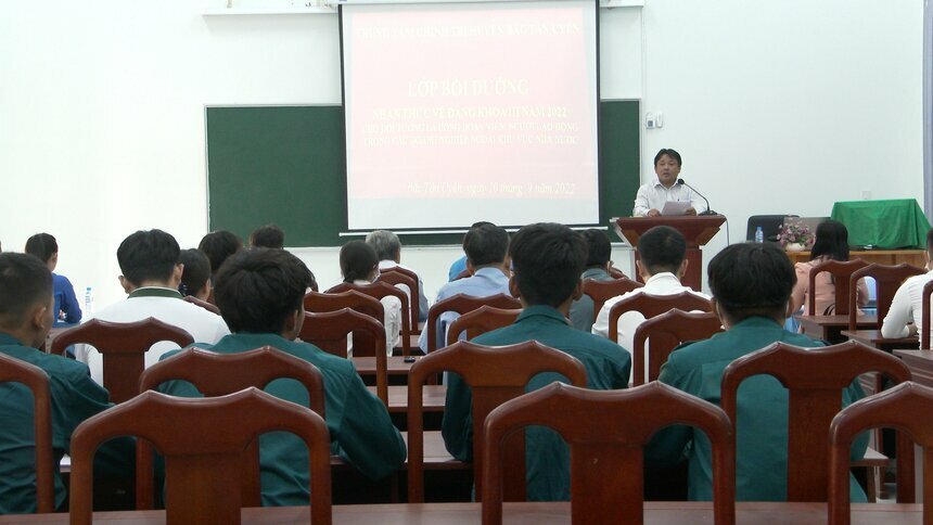 Sáng ngày 10-9, Trung tâm Chính trị huyện Bắc Tân Uyên tổ chức khai giảng lớp bồi dưỡng nhận thức về Đảng khóa III năm 2022 cho hơn 40 công đoàn viên, người lao động trong các doanh nghiệp ngoài nhà nước. Đến dự lớp khai giảng có đồng chí Nguyễn Thanh Lâm - Trưởng Ban Tổ chức Huyện ủy; đồng chí Trần Hữu Phúc – Chủ tịch LĐLĐ huyện; đồng chí Hồ Thị Liễu – Phó Giám đốc Trung tâm Chính trị huyện; đồng chí Hồ Thị Thanh Tuyền – Phó Bí thư Huyện đoàn.