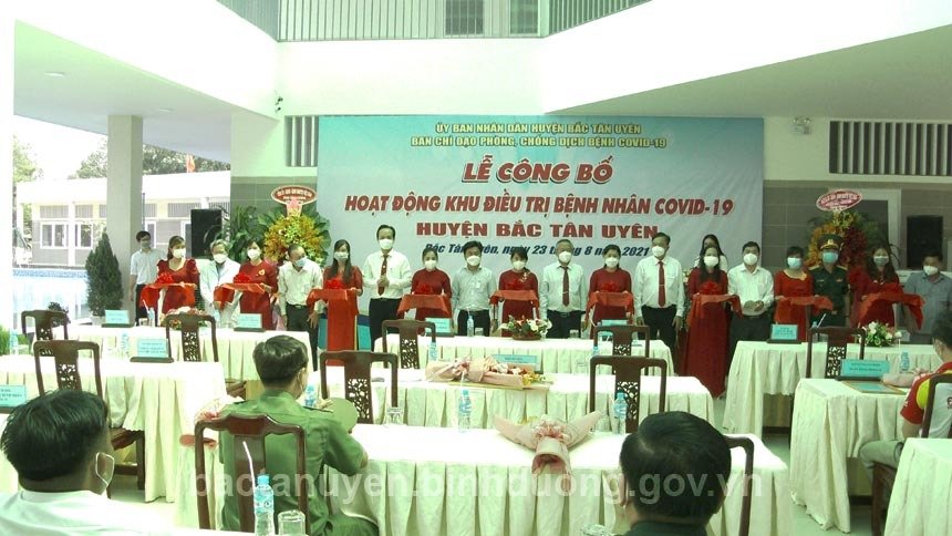Sáng ngày 23-8, huyện Bắc Tân Uyên tổ chức Lễ khánh thành và đưa vào hoạt động Khu điều trị bệnh nhân COVID-19 huyện. Đến dự lễ có đồng chí Nguyễn Văn Lợi - Bí thư Tỉnh ủy; đồng chí Võ Văn Minh - Chủ tịch UBND tỉnh; đồng chí Mai Hùng Dũng - Phó Chủ tịch UBND tỉnh; đồng chí Thái Thanh Bình - Bí thư Huyện ủy, Chủ tịch UBND huyện, cùng các đồng chí trong Ban Thường vụ Huyện ủy, lãnh đạo các Ngành, Đoàn thể huyện.