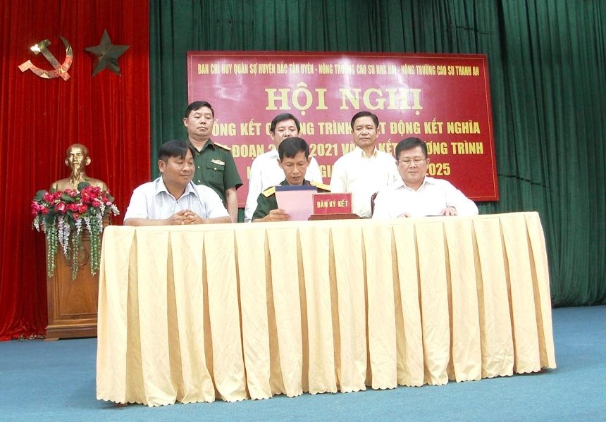 Sáng ngày 13-10, tại Hội trường Ban Chỉ huy quân sự huyện Bắc Tân Uyên, Ban Chỉ huy quân sự huyện Bắc Tân Uyên phối hợp Nông trường Cao su Nhà Nai (huyện Bắc Tân Uyên), Nông trường Cao su Thanh An (huyện Dầu Tiếng) tổ chức Hội nghị tổng kết chương trình hoạt động kết nghĩa giai đoạn 2016-2021 giữa Ban Chỉ huy quân sự huyện Bắc Tân Uyên với Nông trường Cao su Nhà Nai; ký kết chương trình hoạt động kết nghĩa giai đoạn 2022-2025 giữa 3 đơn vị.