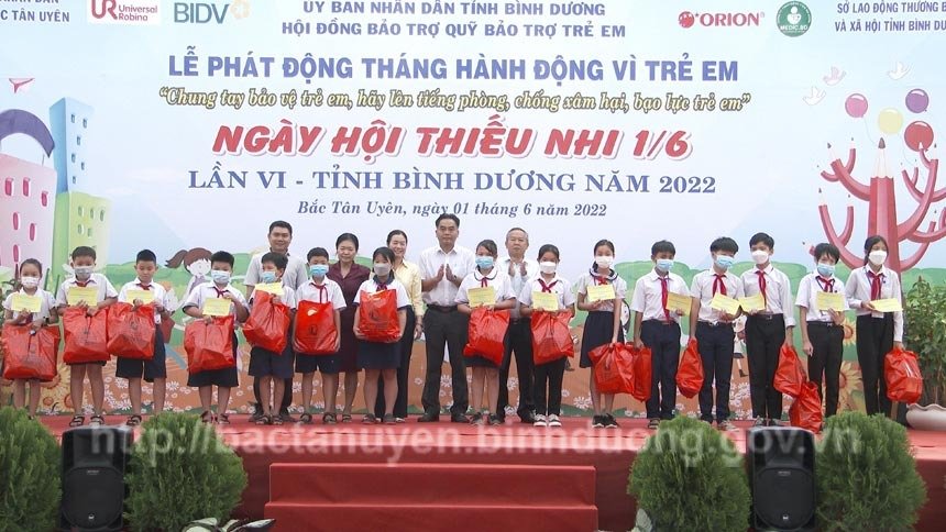 Sáng ngày 1-6, Sở Lao động – Thương binh và Xã hội tỉnh Bình Dương phối hợp cùng Ủy ban nhân dân huyện Bắc Tân Uyên tổ chức Lễ phát động Tháng hành động vì trẻ em và Ngày hội Thiếu nhi 1-6, lần VI - tỉnh Bình Dương năm 2022. Đến dự Lễ phát động có ông Nguyễn Lộc Hà – Ủy viên Ban Thường vụ Tỉnh ủy, Phó Chủ tịch UBND tỉnh, Chủ tịch Hội đồng bảo trợ Quỹ Bảo trợ trẻ em tỉnh; ông Lê Minh Quốc Cường – Giám đốc Sở Lao động - Thương binh và Xã hội tỉnh; Bà Trần Thị Kim Lan – Phó Chủ tịch UBMTTQVN tỉnh; Bà Trần Thị Diễm Trinh – Phó Bí thư Tỉnh Đoàn; ông Thái Thanh Bình – Bí thư Huyện ủy, Chủ tịch UBND huyện; ông Trương Văn Phong – Phó Bí thư Huyện ủy. Cùng các ông bà là lãnh đạo và đại diện Phòng LĐ-TB&XH các huyện, thị xã, thành phố trong tỉnh; thành viên Ban chỉ đạo Chương trình hành động Vì trẻ em huyện Bắc Tân Uyên giai đoạn 2021 – 2030 và 950 trẻ em của 9 huyện, thị xã, thành phố tham dự trực tiếp tại Lễ phát động.