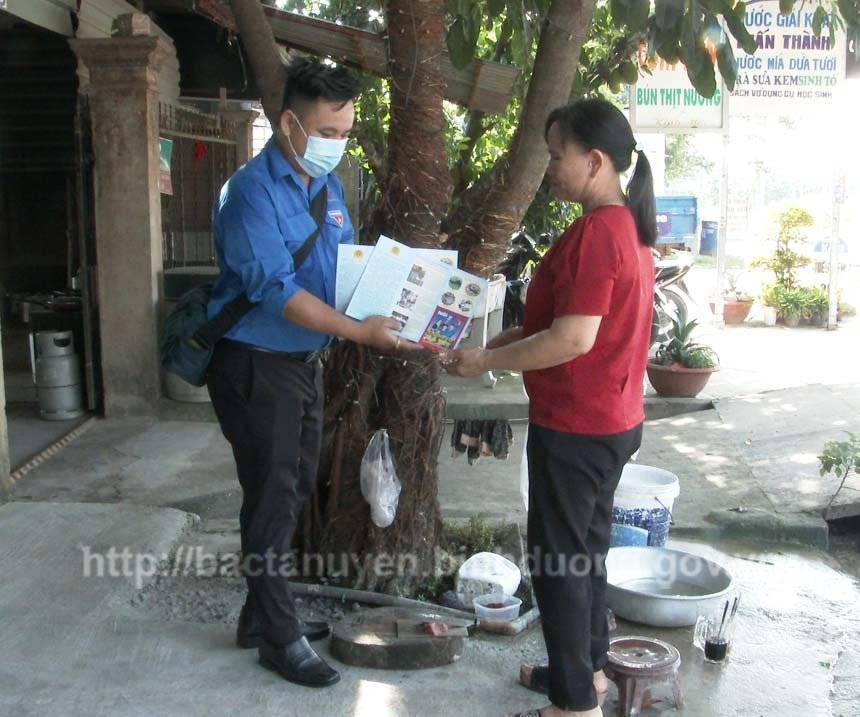 Đoàn viên thanh niên phát tờ rơi tuyên truyền phòng, chống ma túy cho người dân