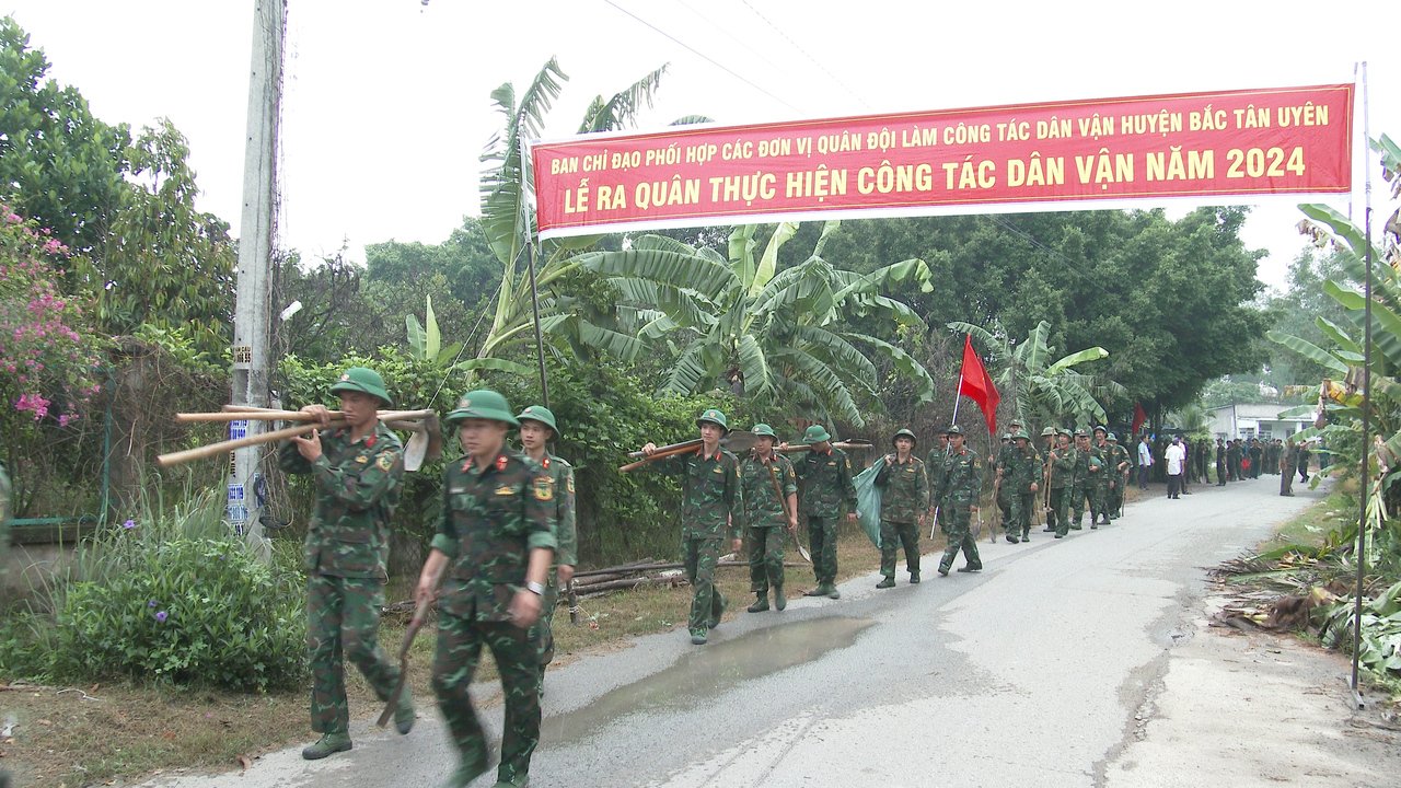 Sáng ngày 22-6, tại xã Thường Tân, Ban chỉ đạo (BCĐ) phối hợp các đơn vị quân đội làm công tác dân vận huyện Bắc Tân Uyên phối hợp Trung tâm huấn luyện thực hành Trường Sỹ quan Công binh khu vực phía nam ra quân thực hiện công tác dân vận năm 2024. Tham dự đợt ra quân có ông Huỳnh Phú Quý- Phó Trưởng ban Dân vận tỉnh; Đại tá Lê Minh Phương- Phó Chính ủy, Bộ CHQS tỉnh; Đại tá, Tiến sĩ Nguyễn Duy Cảnh- Hiệu trưởng Trường Sĩ quan Công binh; ông Phạm Văn An- UVTV Huyện ủy, Trưởng Ban Dân vận Huyện ủy -Trưởng BCĐ; lãnh đạo các cơ quan, ban ngành đoàn thể huyện là thành viên BCĐ phối hợp các đơn vị quân đội làm công tác dân vận trên địa bàn huyện.