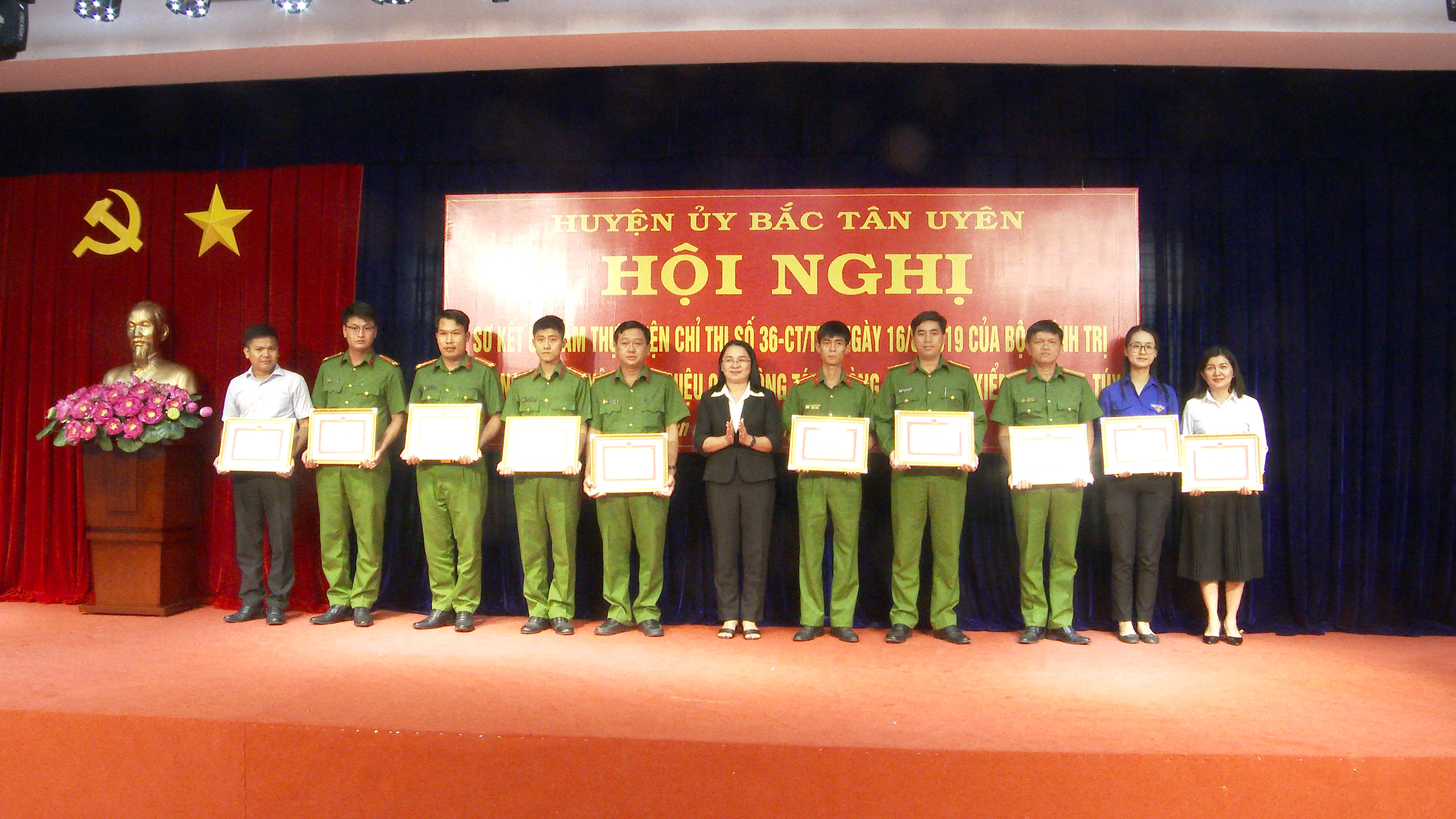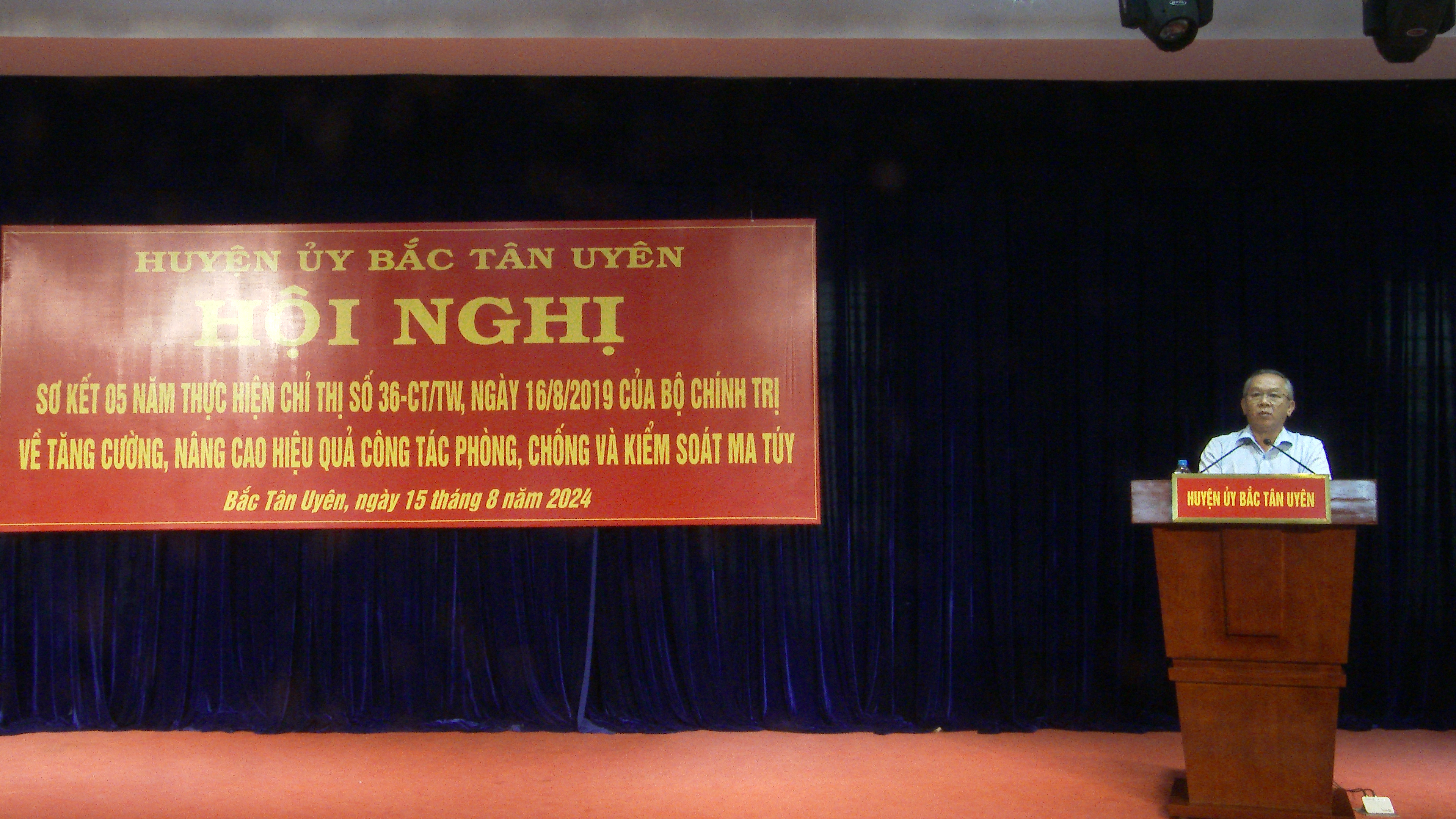 Sáng ngày 15-8, Huyện uỷ Bắc Tân Uyên tổ chức hội nghị sơ kết 5 năm thực hiện Chỉ thị số 36-CT/TW ngày 16-8-2019 của Bộ Chính trị về tăng cường, nâng cao hiệu quả công tác phòng, chống và kiểm soát ma tuý. Dự hội nghị có thượng tá Lê Xuân Thanh - Phó Trưởng phòng PC04, Công an tỉnh; ông Thái Thanh Bình - tỉnh uỷ viên - Bí thư Huyện ủy; ông Nguyễn Thành Thường - Phó Bí thư Huyện ủy - Chủ tịch UBND huyện; ông Lê Văn Quý - UVTV Huyện uỷ - Phó Chủ tịch HĐND huyện; ông Phạm Văn An - UVTV Huyện uỷ - Trưởng ban Dân vận Huyện ủy; bà Lê Huỳnh Lê - HUV - Chủ tịch Ủy ban MTTQ VN huyện, lãnh đạo các ban, ngành, đoàn thể huyện, lãnh đạo Đảng ủy, UBND, công an các xã, thị trấn.