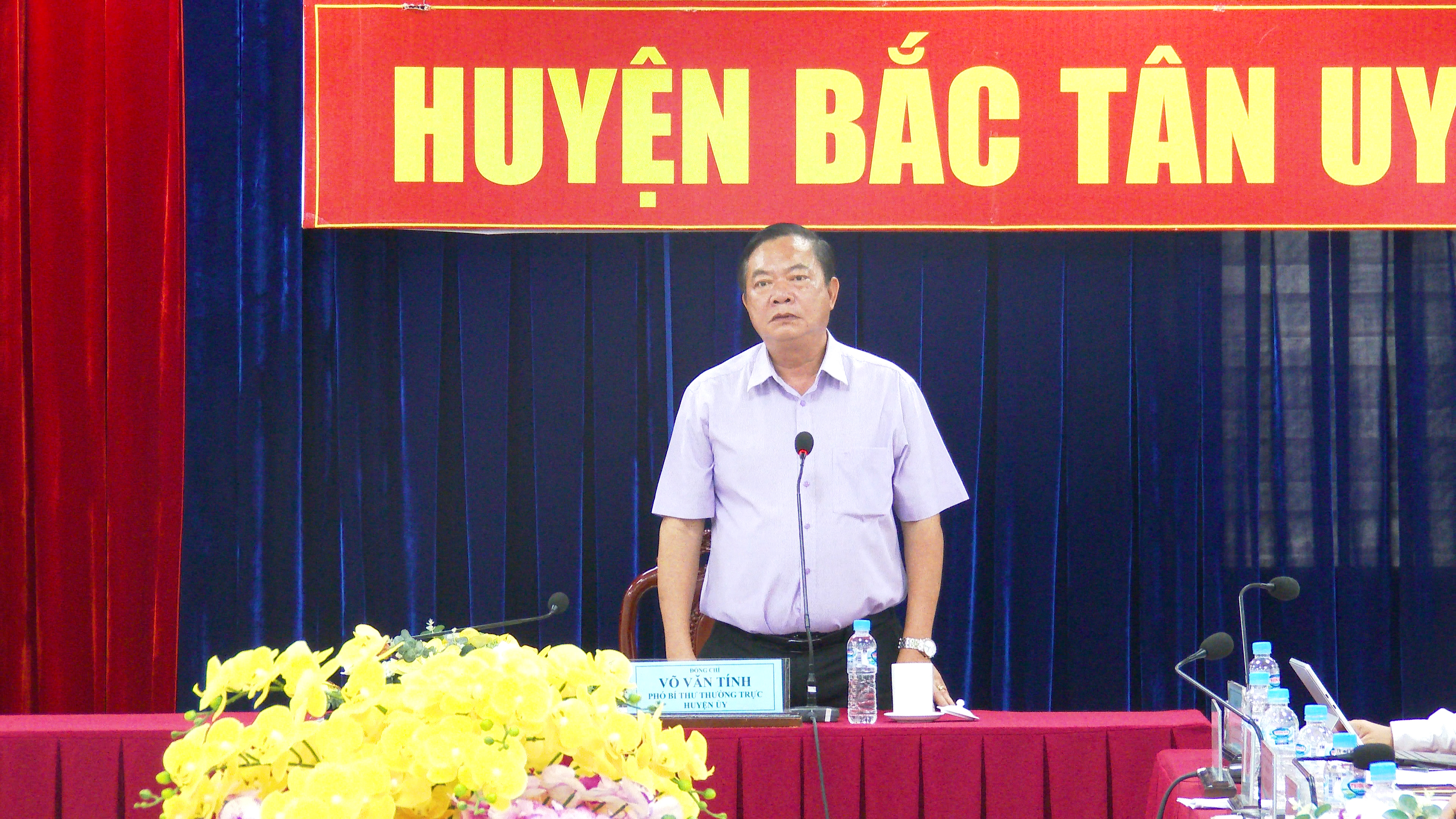 Đ/c Võ Văn Tính - Phó Bí thư Thường trực Huyện ủy, Chủ tịch HĐND huyện phát biểu kết luận hội nghị