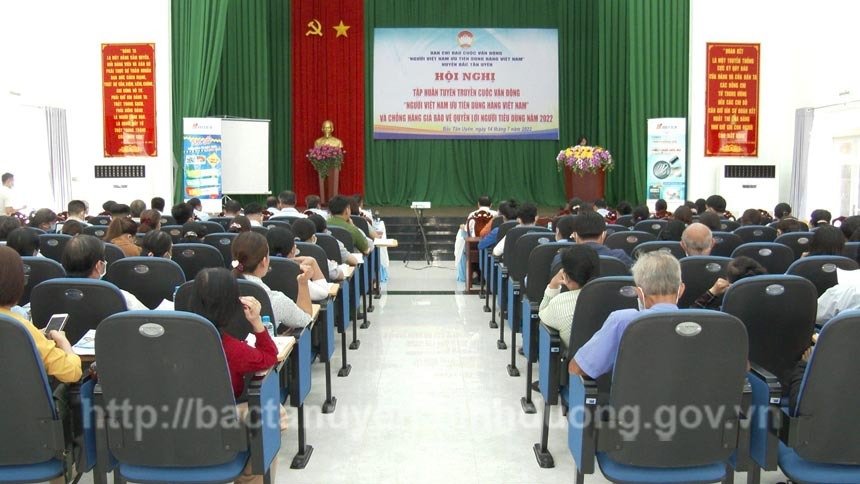 Sáng ngày 14-7, Ban Chỉ đạo Cuộc vận động “Người Việt Nam ưu tiên dùng hàng Việt Nam” huyện Bắc Tân Uyên tổ chức Hội nghị tập huấn tuyên truyền Cuộc vận động “Người Việt Nam ưu tiên dùng hàng Việt Nam” và chống hàng giả, bảo vệ quyền lợi người tiêu dùng năm 2022. Đến dự Hội nghị tập huấn có ông Phạm Văn An – Trưởng Ban Dân vận Huyện ủy, Chủ tịch UBMTTQVN huyện; ông Nguyễn Lộc Sơn – Đội trưởng Đội Quản lý thị trường liên huyện số 4; ông Huỳnh Tấn Trí – đại diện Công ty Cổ phần xuất nhập khẩu Bình Tây (BITEX) và có gần 200 đoàn viên, hội viên, đại diện hội người tiêu dùng, Ban thường trực, Ban công tác Mặt trận và nhân dân của 10 xã, thị trấn trên địa bàn huyện tham gia tập huấn.