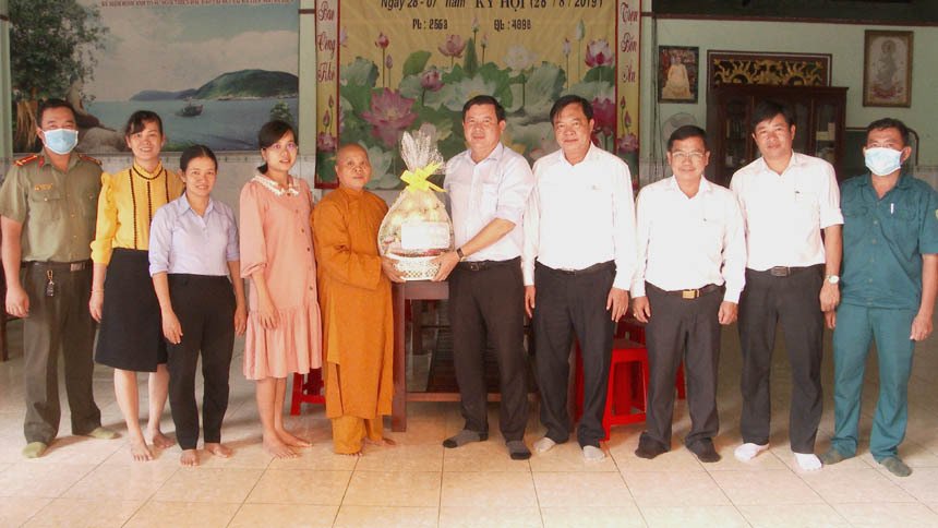 Ông Trương Văn Phong - Phó Bí thư Huyện ủy thăm, chúc mừng Đại lễ Phật đản năm 2021 - Phật lịch 2565 tại chùa Bảo Lâm Sơn (xã Tân Định)