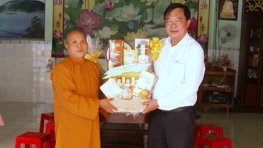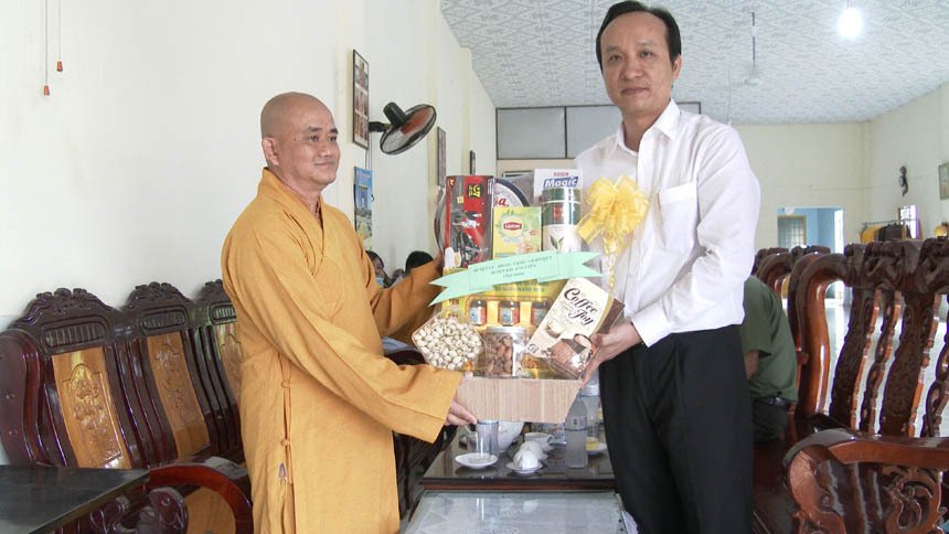 Ông Trương Văn Phong - Phó Bí thư Huyện ủy thăm, chúc mừng Đại lễ Phật đản năm 2021 - Phật lịch 2565 tại chùa Thiện Hiếu (xã Lạc An)