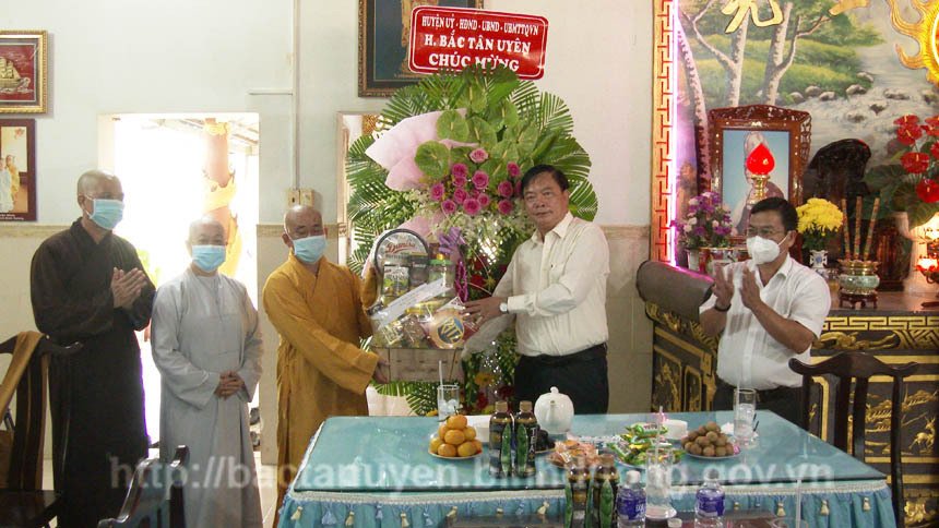 Nhân dịp này, thay mặt Huyện ủy – HĐND – UBND - Ủy ban MTTQVN huyện, đồng chí Võ Văn Tính – Phó Bí thư Thường trực Huyện ủy đã tặng hoa và quà, chúc mừng Đại Đức Thích Thiện Quang - Trưởng Ban trị sự Giáo hội Phật giáo huyện Bắc Tân Uyên và các tăng ni, phật tử.