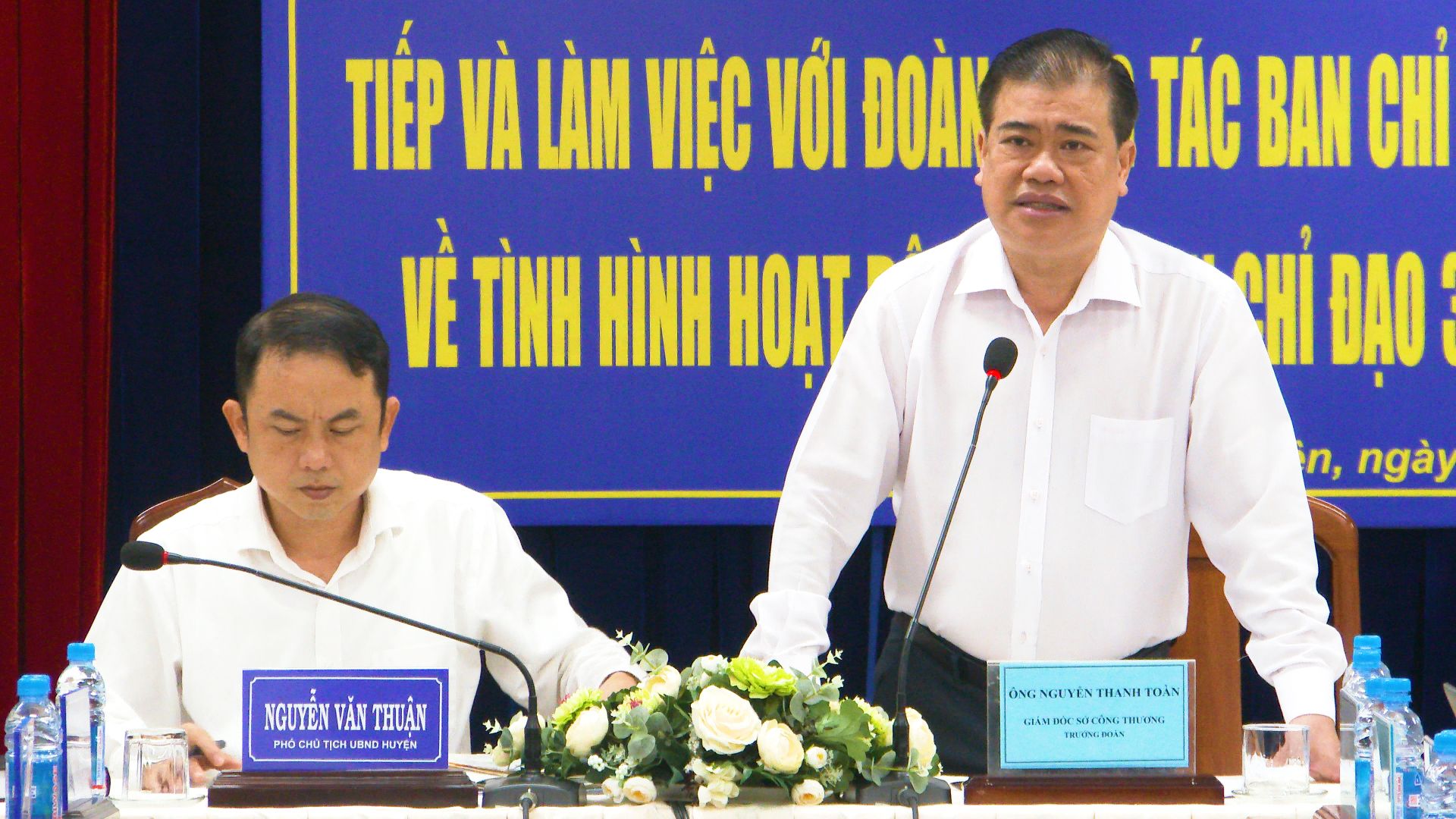 Kết luận buổi làm việc, ông Nguyễn Thanh Toàn - TUV, Giám đốc Sở công thương tỉnh đánh giá cao kết quả mà Ban chỉ đạo 389 huyện đã đạt được trong công tác đấu tranh chống buôn lậu, gian lận thương mại và hàng giả thời gian qua. Đồng thời đề nghị trong thời gian tới, BCĐ 389 huyện cần kiện toàn lại thành viên BCĐ huyện; tiếp tục đẩy mạnh công tác tuyên truyền, phổ biến, giáo dục pháp luật cho người dân không tham gia hoặc tiếp tay cho các đối tượng buôn lậu, vận chuyển hàng cấm, nâng cao tinh thần tố giác các hành vi vi phạm về buôn lậu, vận chuyển trái phép hàng hóa. Tăng cường công tác thanh, kiểm tra, kiểm soát thị trường nhằm kịp thời phát hiện, ngăn chặn, xử lý các đối tượng vận chuyển, tàng trữ, kinh doanh hàng lậu, hàng cấm, sản xuất, buôn bán hàng giả và gian lận thương mại trên địa bàn...
