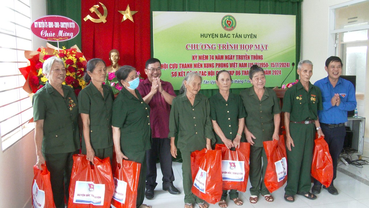 Chiều ngày 15/7, Hội Cựu TNXP huyện Bắc Tân Uyên tổ chức chương trình Họp mặt kỷ niệm 74 năm ngày Truyền thống lực lượng TNXP Việt Nam (15/7/1950 - 15/7/2024) và Sơ kết công tác Hội Cựu TNXP 6 tháng đầu năm 2024. Tham dự chương trình có ông Phạm Văn An - UVTV Huyện ủy - Trưởng Ban Dân vận Huyện ủy; anh Đỗ Ngọc Lợi - HUV, Bí thư Huyện Đoàn; bà Nguyễn Thị Kim Nguyên - Phó Trưởng phòng Lao động - Thương binh và Xã hội huyện; ông Nguyễn Văn Đua - Chủ tịch Hội Cựu TNXP huyện, cùng đại diện lãnh đạo các ban, ngành đoàn thể huyện, Cấp ủy Đảng các xã, thị trấn và hơn 60 hội viên hội Cựu TNXP trong toàn huyện.