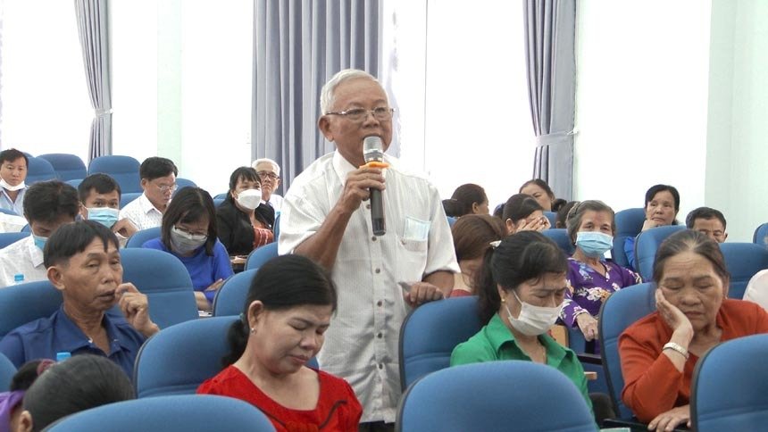 Cử tri xã Tân Lập phát biểu ý kiến đóng góp đối với ngành Y tế huyện