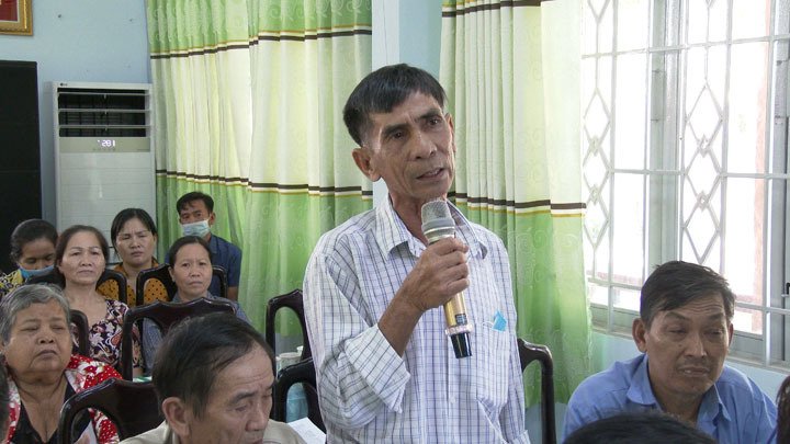Ông Đinh Hữu Phước người dân ấp Tân Lợi, xã Đất Cuốc phát biểu ý kiến tại buổi đối thoại