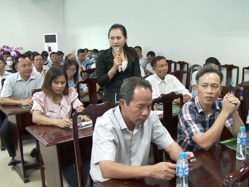 Tại hội nghị, đại diện các công ty, doanh nghiệp, cơ sở kinh doanh cũng đã trao đổi một số ý kiến liên quan đến lĩnh vực OCOP, hỗ trợ vốn vay đối với các doanh nghiệp, cơ sở kinh doanh trong lĩnh vực nông nghiệp; việc cung cấp điện trong sản xuất của các công ty, doanh nghiệp, các trang trại cây ăn trái; mức độ khôi phục lại tình trạng ban đầu của đất trước khi vi phạm đối với từng loại vi phạm hành chính trong lĩnh vực đất đai; việc thành lập các câu lạc bộ doanh nhân trẻ trên địa bàn.