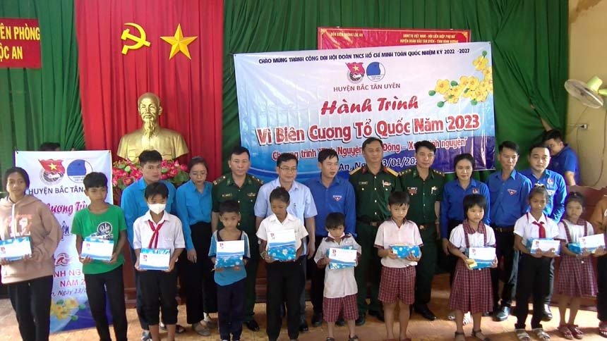 Sáng ngày 13-1, tại xã Lộc An, huyện Lộc Ninh, tỉnh Bình Phước, Hội Liên hiệp Thanh niên huyện Bắc Tân Uyên phối hợp với Ủy ban MTTQVN huyện và Hội Liên hiệp phụ nữ huyện tổ chức Hành trình Xuân Biên Cương năm 2023. Tham dự hành trình có ông Phạm Văn An - Trưởng ban Dân vận Huyện ủy, Chủ tịch Ủy ban MTTQVN huyện; bà Phan Thị Ngọc Lợi - Chủ tịch Hội LHPN huyện; ông Đỗ Ngọc Lợi - Bí thư Huyện Đoàn, đại diện lãnh đạo Ban CHQS huyện.